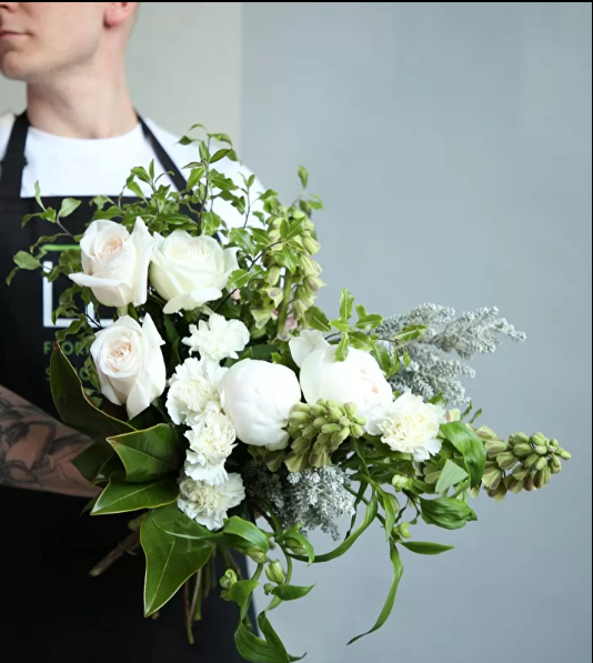 A mesmerizing bouquet of purple orchids, lavender roses, and soft greenery.